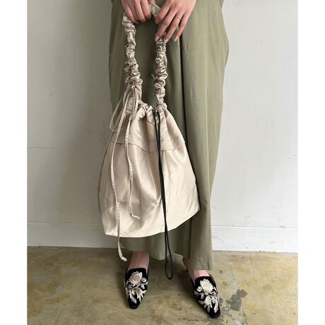 [型番:37-1662]☆シャーリングで長さ調節できるキンチャクバッグ☆*POINT*・存在感のある大きめサイズ!・口を絞るタイプのキンチャクフォルムが可愛い♪・ストラップは内側の共ヒモを絞ることで長さ調節可能。 クシュっとシャーリングで肩にかけても華やかに。・表面のポケットも小物入れに便利◎・内側ファスナーポケット付き。・5色の豊富なカラー展開。