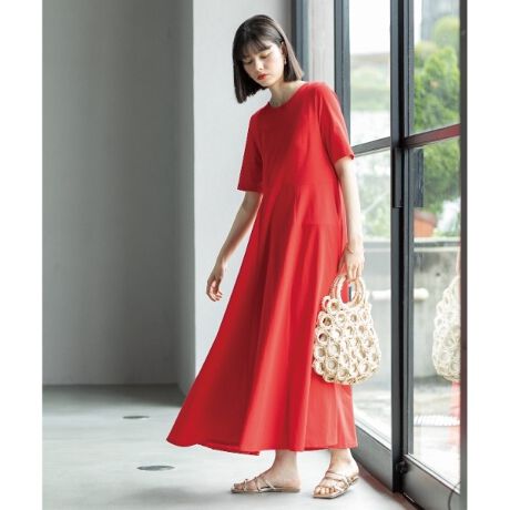 ・ウエストを高めに切替えたフィット&フレアシルエットで、きれいめな着こなしの叶うワンピース。