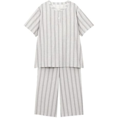 【パジャマ(5分袖8分丈パンツ)】“眠る時間を、夢の時間に”睡眠が豊かになれば、毎日の暮らしはもっと活力に満ちたものになる。“眠る時間を、夢の時間に”をコンセプトに、パジャマをはじめ睡眠アイテムを幅広くそろえ、喜びあふれる明日へと導きます。・栽培時の農薬や化学肥料の使用を抑え、土壌汚染など環境に配慮したオーガニックコットンの二重ガーゼを使用・赤ちゃんの産着にも使われる綿100%の二重ガーゼ 通気性と吸汗速乾性がよく、着れば着るほどやわらかく肌になじんでふんわりした着ごこち・ウエストゴム2本の仕様でおなかまわりもラクラク【サイズ詳細】M:身幅54.0cm 着丈66.0cm 身丈68.5cm 肩幅47.0cm 袖丈22.0cm ボトム脇丈82.0cm 裾まわり57.0cm ウエスト60.0cm ヒップ105.0cm 股下(レングス)54.0cmL:身幅58.0cm 着丈66.0cm 身丈68.5cm 肩幅49.0cm 袖丈22.0cm ボトム脇丈82.5cm 裾まわり59.0cm ウエスト65.0cm ヒップ109.0cm 股下(レングス)53.5cm※出来上がり寸法を表示しております