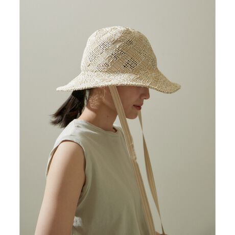リボンが編み込まれたオリジナル素材を使用したハット。