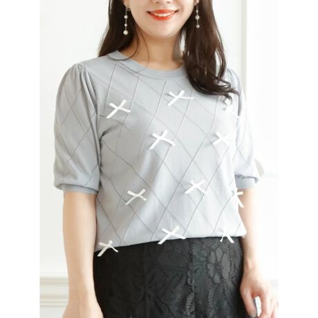 フロントのリボンモチーフがガーリーなアクセントになるプルオーバー。