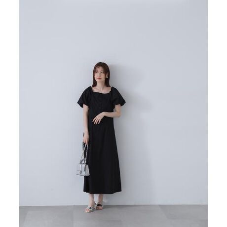[型番:1664240600]シルエットが綺麗に見えるデザインダーツを入れたワンピースです。袖は二の腕をカバーする着映えパフスリーブ、襟ぐりはデコルテがすっきり見えるスクエアネック、フロント釦もアクセントになります。広がりを抑えたシルエットは、後ろセンタースリット入りで足さばき良く仕上げています。一枚でコーディネートが決まる夏にぴったりなデザイン。あると嬉しいポケット付きです。