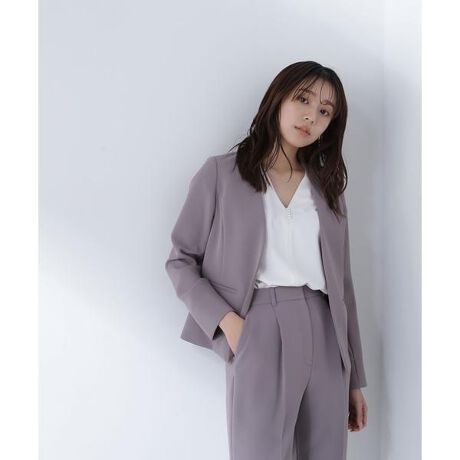 ミニマルでキレイめな洗練ノーカラージャケット。ウエストをシェイプし過ぎない、今の気分にぴったりなすっきり見えするシルエットです。袖口にはスリットを施したので、袖先を折り返して抜け感をプラスした着こなしも可能。同じ素材のテーパードパンツを揃えてSETUPのスーツスタイルとしてもオススメです。<素材>中肉でやや組織感のあるツイルを使用。程よいハリ感がありシルエットがキレイに出る素材感です。<詳細>仕様・前ホック裏地・なし透け感・ややあり / 光沢・なし / 伸縮性・ややあり 生地の厚さ・普通<シリーズ>■パンツ[品番:0174230610] ※モデルの着用画像の場合、光の当たり具合により、実際の色味と異なって見えることがございます。色味は、商品単体の画像をご参照ください。