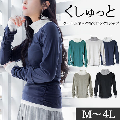 人気商品のタートルネック指穴ロングTシャツ。
