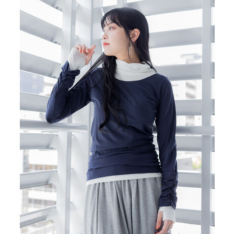 人気商品のタートルネック指穴ロングTシャツ。