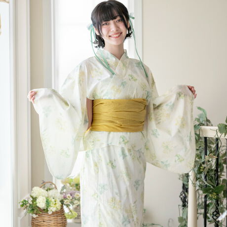 またはオーガンジー兵児帯をセット。それぞれ柄に合うニュアンスカラー帯をコーデして、
