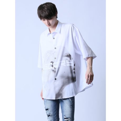 フォトとロゴのコラージュが抜群にカッコいい、レギュラーカラーの半袖シャツです。インパクトが強いのでディテールはシンプルに仕上げています。ボタンを閉じて着たり、シャツアウターとして羽織ったり幅広い着こなしが可能です。