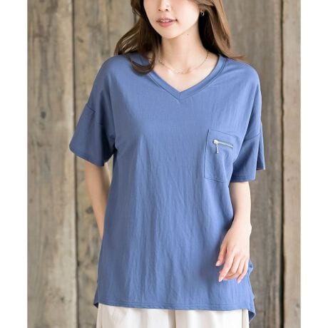 ポケットファスナーがアクセントになったカットソーTシャツ