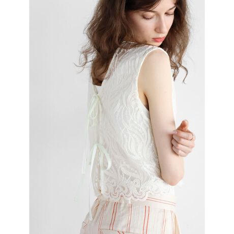 刺繍ノースリーブシアーブラウス