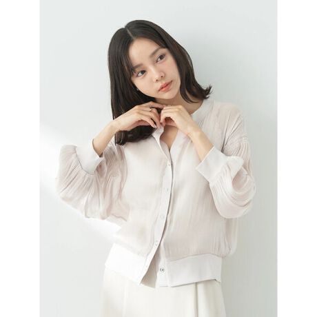 シャイニーなシアーラメが装いを華やかに演出するカーディガン。