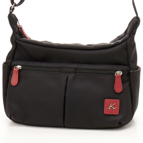 [型番:P-1094]撥水ナイロン素材で仕立てたカジュアルなショルダーバッグ。外ポケットが6箇所あり収納力抜群。軽量で雨の日でも安心してお持ちいただけます。