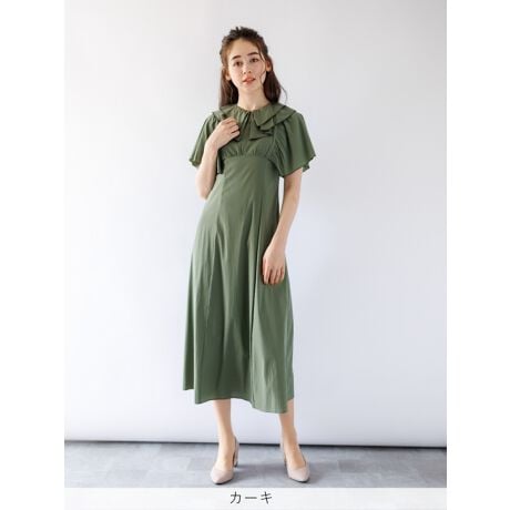 また、トップの華やかなボリュームに対してバスト下から裾まではすっきりとしたシルエットにすることで、
