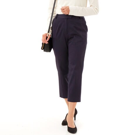綿のさっぱりしたハリ感のある素材が脚の形をカバーしメイクしてくれる美ラインパンツ。