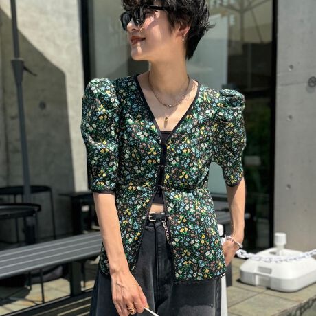 《水洗い可能》リバティプリント パワショル半袖ブラウス