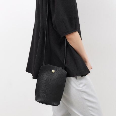 斜め掛けできるので、ハンズフリーでお出かけできるのが嬉しいアイテム。ミニマルなライフスタイルにぴったりなバッグです