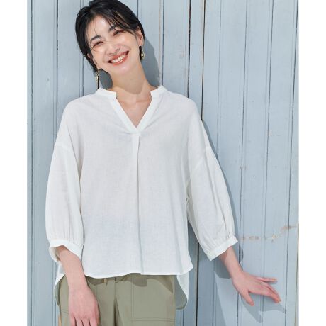 【手洗い可能】ヨーロピアンリネンスキッパーネックブラウス