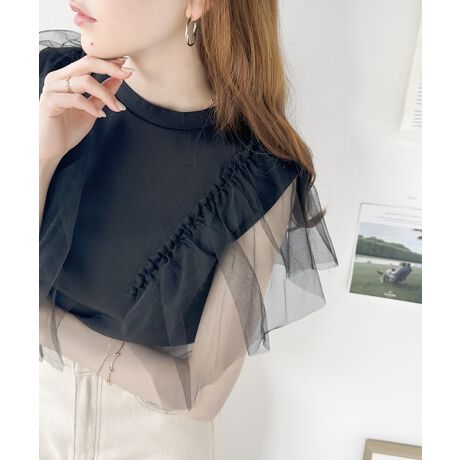 女性らしいチュール素材をドッキングした華やかな1枚。
