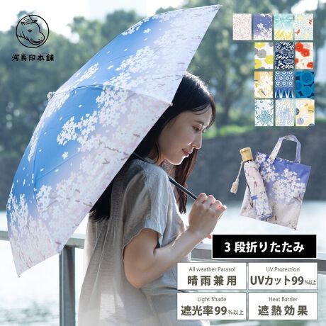 裏面コーティング付きで、UVカット率&遮光率99%以上、遮熱効果あり、はっ水効果付き。雨の日もお使いいただける晴雨兼用日傘です。