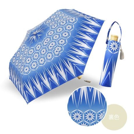 和柄のデザインだけでなく、どの柄にも日本の伝統色を一色使用しています。手元は寒竹を使用。綿が含まれた風合いのある生地を使用しているので、上品な和の趣が感じられます。