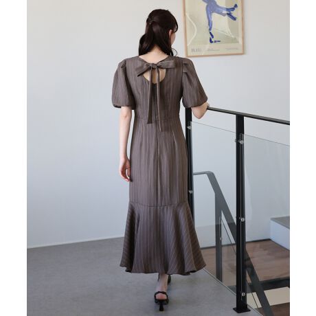 《新柄ストライプ追加》バックリボンマーメイドワンピース