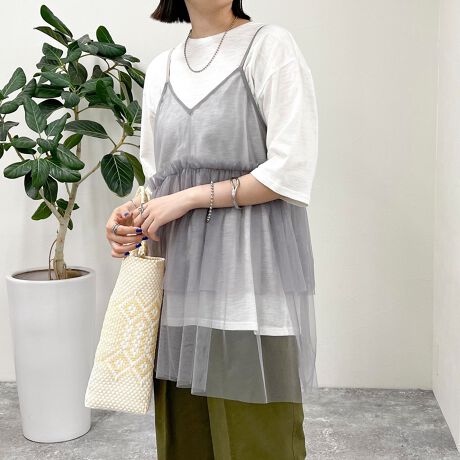 簡単にトレンドコーデが完成するチュールキャミビスチェセット