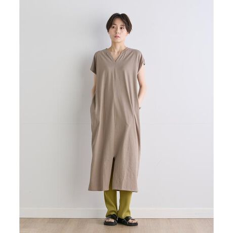 すとんと落ちるロング丈に幅広めのシルエットで、ゆるっとリラックスした着こなしが完成するワンピース。浅めのVネックで抜け感をプラスし、カジュアルな中にも女性らしさを感じさせるアクセントに。裾のスリットで足さばきも良く、ポケットもついて機能面も兼ね備えています。シンプルなデザインを活かしてカラーボトムや柄を合わせた遊び心ある着こなしがおすすめです。・ポケットあり・水洗い可■サンプル撮影商品■こちらの商品はサンプルでの撮影となっております。実際の商品とは、サイズや色味、素材、デザイン等の仕様が若干変更になる場合がございます。