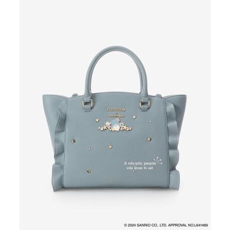 ◇SAMANTHAVEGA(サマンサベガ)の【タキシードサムコレクション】フラッター(小)サマンサベガの「タキシードサム」コレクションからフラッターが登場。大人気のフラッターシリーズに「タキシードサム」のデザインを落とし込んだアイテム。「タキシードサム」のボディーカラーであるライトブルーをメインに、「タキシードサム」のアートや、食べることが大好きな「タキシードサム」を表したアイスモチーフを金具プレートに落とし込んだデザイン。おしゃれな「タキシードサム」をイメージし、バッグの前面にキラキラした星やスタッズを散りばめております。下部には、得意な英語で“食べることが大好きな丸丸としたペンギン”の文字をプリント。細部にまで「タキシードサム」をイメージしたモチーフや、遊び心のあるデザインに。サイズ感は、長財布や500mlのペットボトルが入る嬉しいサイズ感で、ショルダーもついているので2wayでお使い頂けます。