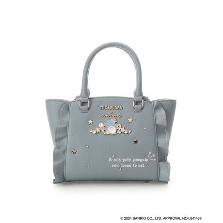 ◇SAMANTHAVEGA(サマンサベガ)の【タキシードサムコレクション】フラッター(ミニ)サマンサベガの「タキシードサム」コレクションからフラッターが登場。大人気のフラッターシリーズに「タキシードサム」のデザインを落とし込んだアイテム。「タキシードサム」のボディーカラーであるライトブルーをメインに、「タキシードサム」のアートや、食べることが大好きな「タキシードサム」を表したアイスモチーフを金具プレートに落とし込んだデザイン。おしゃれな「タキシードサム」をイメージし、バッグの前面にキラキラした星やスタッズを散りばめております。フロント下部には、得意な英語で“食べることが大好きな丸丸としたペンギン”の文字をプリント。細部にまで「タキシードサム」をイメージしたモチーフや、遊び心のあるデザインに。また、ショルダーもついているので、2wayでお使い頂けます。