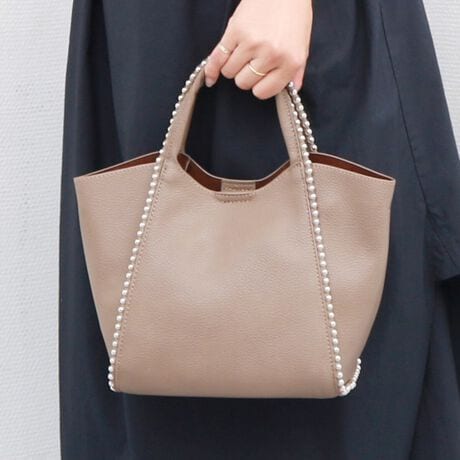 ボディーからハンドルにかけてのボールチェーンがアクセントになったトートバッグ。