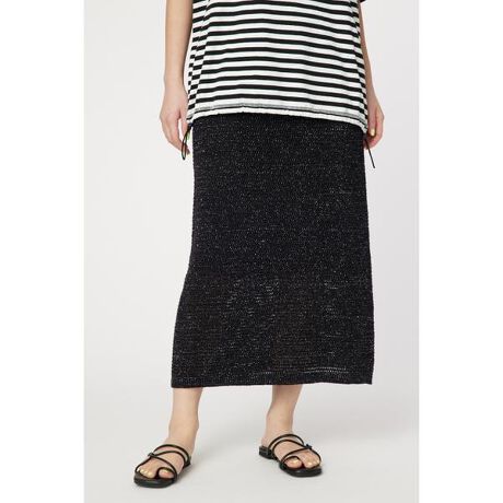 ニット編地でありながら、繊細なコットンの強撚糸とトレンドのラメ糸を使用したスカート。ざっくりとしたメッシュ編みで透け感を出し、春夏らしいドライ感を表現。普段使いしやすいIVO・BLKと、コーデのポイントになるORGの3色展開です。■ポケット:なし■裏地:あり■透け感:あり■伸縮性:あり※引っ掛かりやすい素材を使用していますので、お取り扱いには十分ご注意ください。