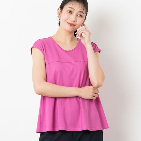 下着が見えにくい肩幅を広めにとったシルエットで、一枚でも着やすい人気デザイン。