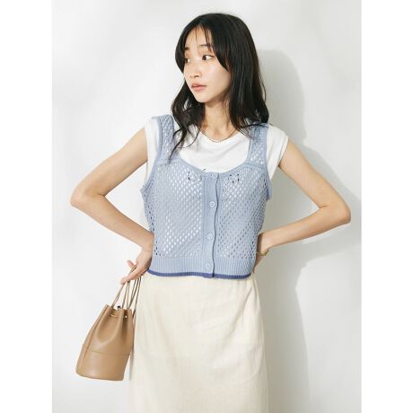 メッシュニットで涼しげな印象に仕上げたビスチェ。