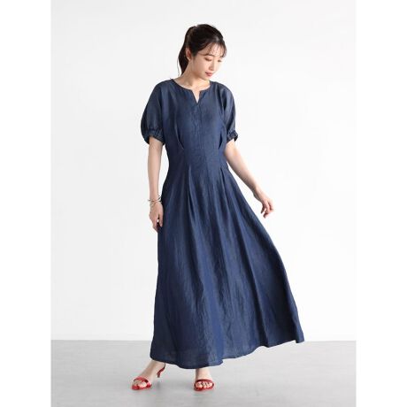 シックなカラーで大人の甘さを引き出した、上品なデニムワンピース。