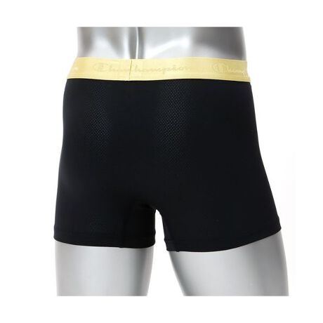 優れた吸汗速乾機能と伸縮性を兼ね備えた「DOUBLE DRYR(ダブルドライ)」ストレッチジャージーを使用したボクサーブリーフです。しわになりにくく、速乾性があり、メッシュ構造による高い通気性と心地良いフィット感が特長。「C ODORLESSR(シーオドレス)」加工による抗菌防臭機能も備えています。Champion(チャンピオン)ロゴを全周に入れた光沢感のあるウエストゴム仕様で、左腰部分にはウエストゴムと同色の光沢感のあるワンポイントのCロゴをプリントしています。