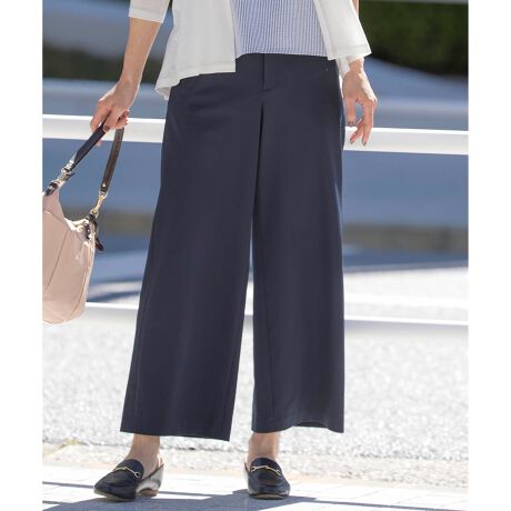 太すぎないシルエットで、様々なトップスに合わせやすいワイドパンツ。後ろウエスト部分はにゴム仕様のため、お腹まわりもすっきり見せながらも、着心地の良いアイテムに仕上げました。シワになりにくく、暑い季節でも快適な素材感でデイリーに活躍します。同素材のジレとのセットアップ対応も可能です。カラーは、明るく女性らしい印象のライトグレー(#003)、落ち着きのある雰囲気のスレート(#004)、どんなカラーにも合わせられるネイビー(#075)の3色で展開します。