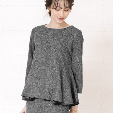 [型番:cw00508]オフィススタイルにも使えるきれいめツイードペプラムトップス。きちんと感のあるツイード素材だからオフィスコーデやお祝いの式でもオールシーズンお使い頂けます!