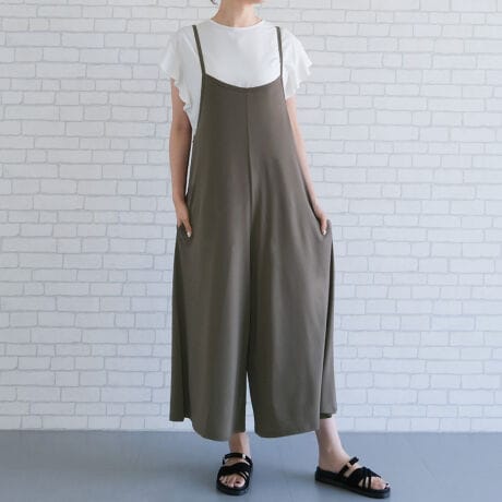[型番:cw00742]ゆとりを持たせた、美シルエットとリラクシーの両方を叶える一品です。キャミソールや、タンクトップ、Tシャツなど、様々なトップスと重ねて、簡単に旬のコーディネートが楽しめます。リゾートシーンなどお出かけにぴったりのキャミワンピースです。