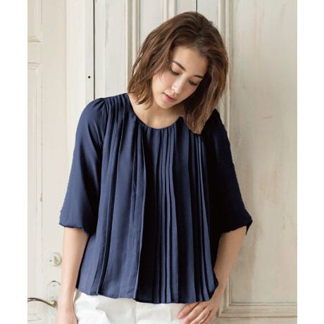 [型番:cw00294]プリーツデザイン×シフォン素材がとびきりフェミニンなブラウスが登場!スッキリとした落ち感キレイめシルエットで、カジュアルにもオフィススタイルにも使えそうなきちんと感が◎色んなコーデに合わせて可愛く上品に着こなして。