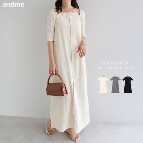 楊柳 配色メロー ホルターネック 半袖 ワンピース