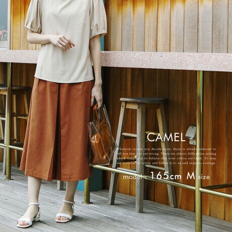 [型番:kw00332]涼しげでさらりとした肌触りのリネンタッチ生地を使用したタック入りスカンツ。タック入りで、腰周りに余裕ができて動きやすく、大人なきちんと感を演出!バックウエストゴムだからストレスフリーで楽ちんな履き心地♪リラックスな履き心地なのに、きちんと感のある上品なスタイリングが完成します。