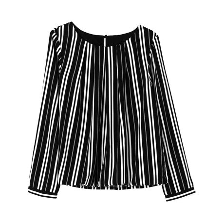 フロントタックと裾バルーンが特徴の無地・ストライプのブラウス。ふんわりとしたシルエットに透け感のある袖・バックスリットなど、シンプルな中に女性らしいディテールが満載。程良いきちんと感があるので、デイリーはもちろんオフィスでも大活躍の優秀アイテムです。