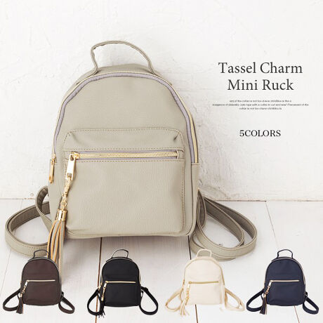 [型番:o00295]シンプルなデザインにタッセルチャームがアクセントになった、ミニリュックが登場。使い勝手の良いサイズ感でデイリーにお使い頂ける、機能性も兼ね備えたアイテムです。マチ幅があるので、ミニサイズながら荷物がしっかり入ります。