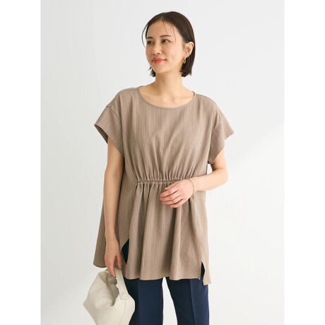[型番:6A46L0G0600]変形ストライプ柄のデザインが大人びた雰囲気を演出するチュニック。ウエストにギャザーを寄せることで、ふんわりとした立体感を実現します。フロントに施されたスリットがさりげない抜け感をプラス◎ボトムスにタックアウトしたコーディネートがおすすめです。透け感[やや有り] 裏地[無し] 伸縮性[無し] 光沢感[無し] 生地の厚さ[薄手] 付属品[無し] ポケット[無し]