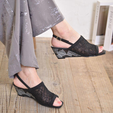 繊細な刺繍レースが上品な印象を与え、バックストラップでしっかりと足をホールド。