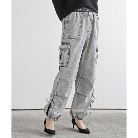 サイドリボンデニムカーゴパンツ
