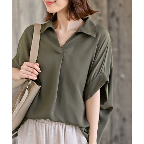 とろみ素材が抜け感を演出する女性らしいシャツブラウス。