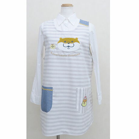 可愛い嘘のカワウソ ボーダータブリエ グレー エプロン 割烹着 キッチン ランチ