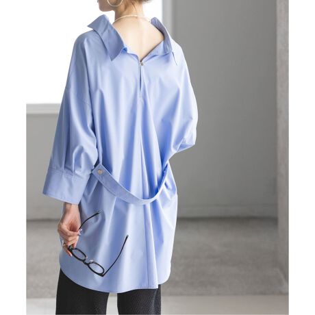 ベルト部分と後ろ襟には金ボタンをつけることで、いつものブラウスとは違った見え感をアピールできます。