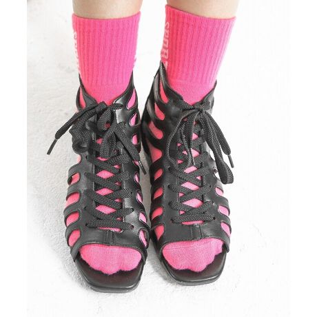 バックファスナー付き編み上げレースアップサンダル