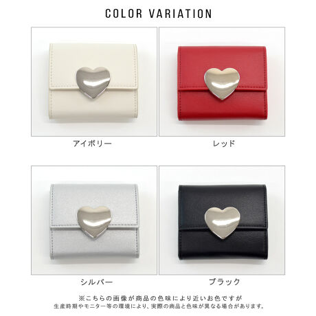 ずっと長財布を愛用していましたが軽くて小さめのものが欲しくなり今回アイボリーを購入しました。ハートのデザインに惹かれて選びましたが画像の通りの商品でとっても可愛いです。ちょうど手のひらに乗るくらいのサイズ感でカード入れは6箇所程あります。ハートの部分がマグネットになっており開閉もスムーズです。アイボリーなのでキズや汚れには気をつけながら、これから使うのが楽しみです。